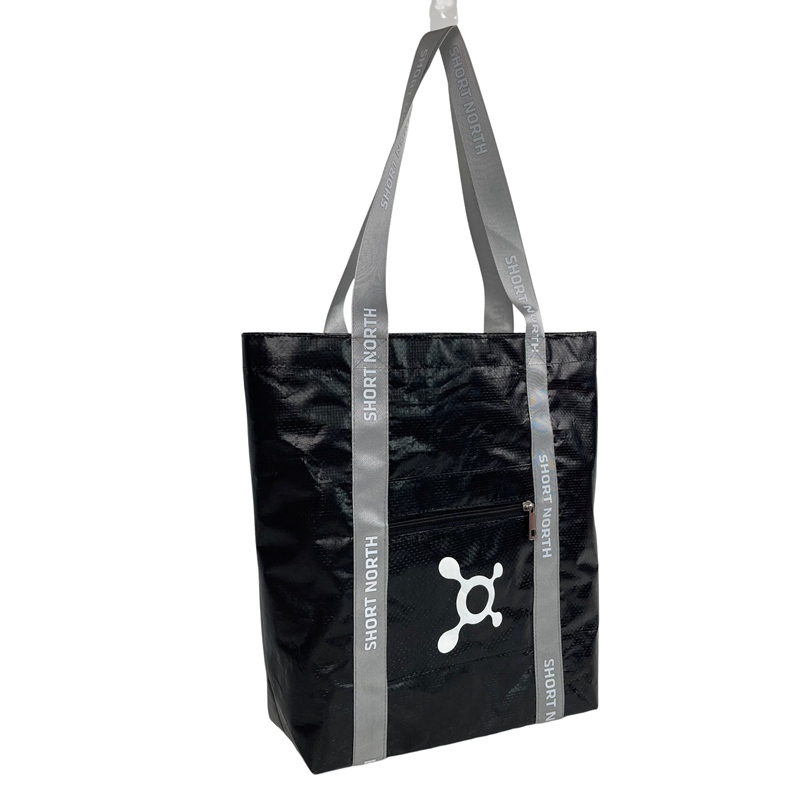 Our custom laminated reusable bags are made from high-quality Pp woven material, ensuring durability and strength to carry your belongings with ease. The black color gives a sleek and sophisticated look, making it suitable for any occasion. The laminated finish adds a touch of elegance and also makes it water-resistant, protecting your items from unexpected spills or light rain.