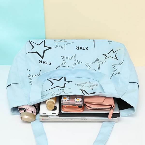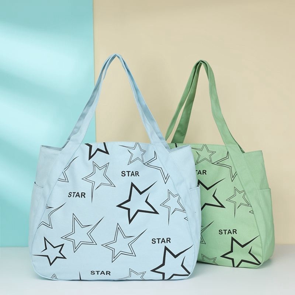 Custom Digital Printing Star Pattern Eco-friendly Fabric Canvas Cotton Tote Bags with Widened Bottom