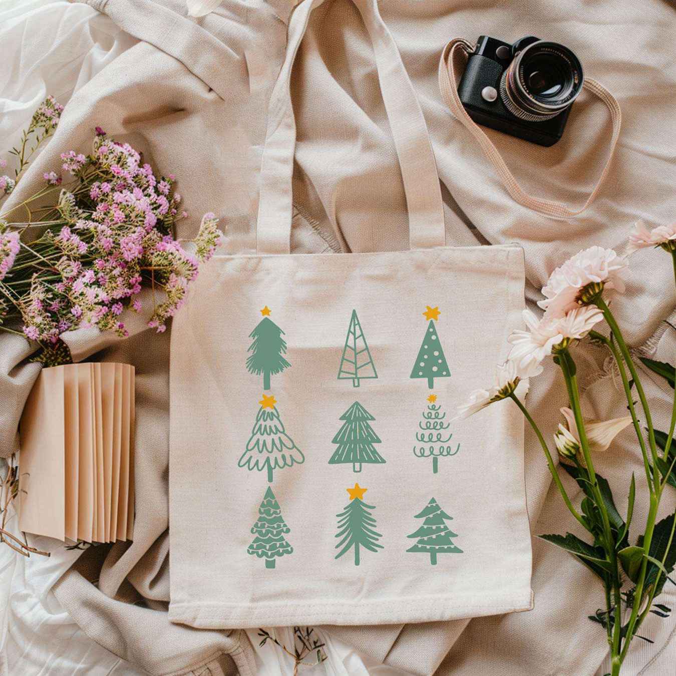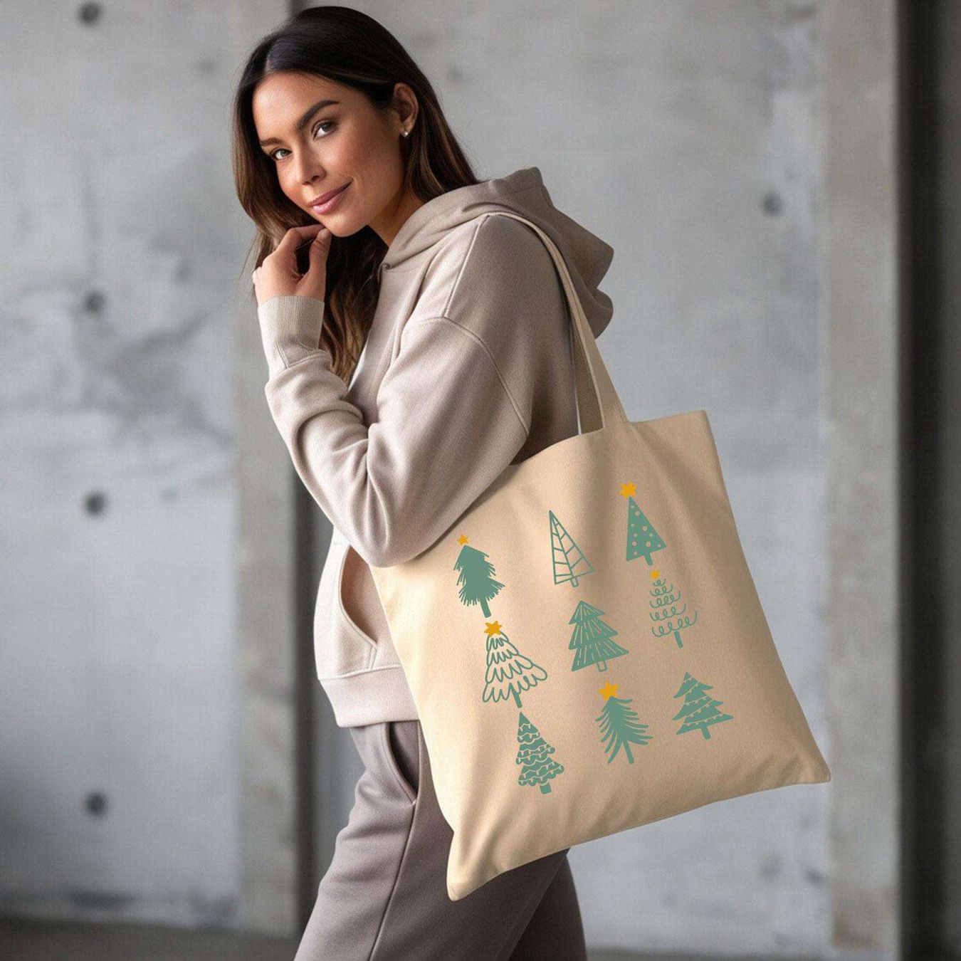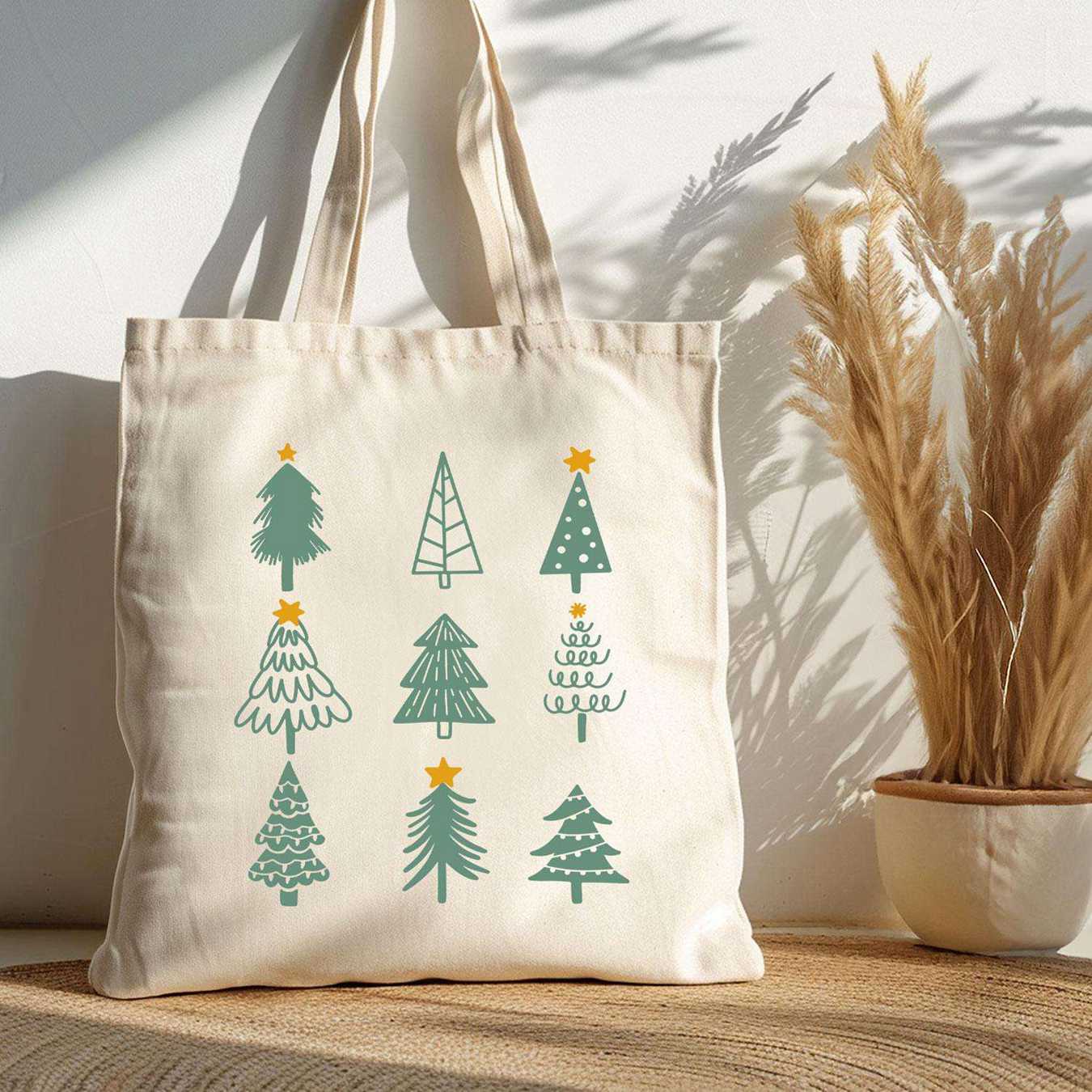 Custom Logo Christmas Tote Bag Foldable Canvas Shopping Bag