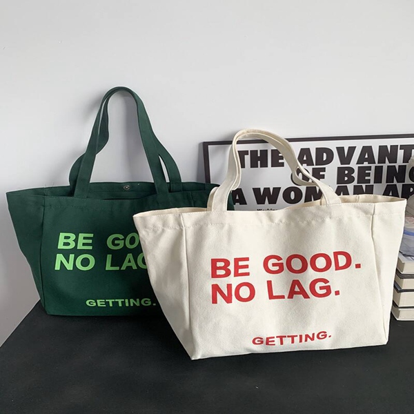 Customized Print Letter logo Large Capacity Canvas Bag for Female College Students Carrying Shopping Bag