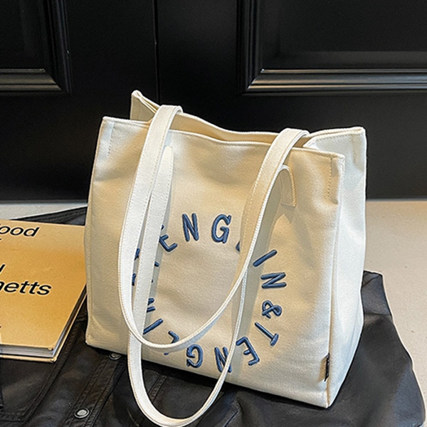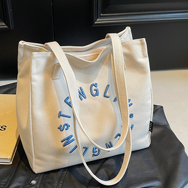 Eco-Friendly Letter Embroidery Canvas Tote Bags Durable Multipurpose for Travel Shopping Canvas Tote Bag