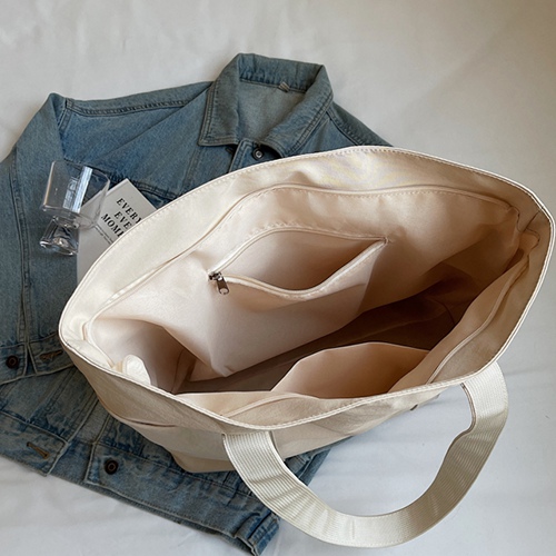 Large Capacity Plain Eco-friendly Canvas Tote Bag Interior Zipper Pocket Tote Bags for Women
