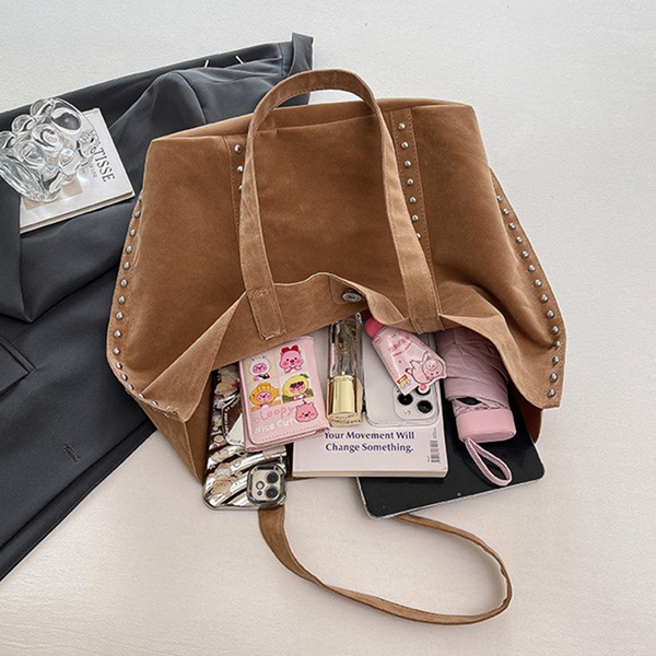 Manufacturer Rivet Decorate Tote Bag High Quality Brown Shopping Bag Large Capacity Travel Tote Bags