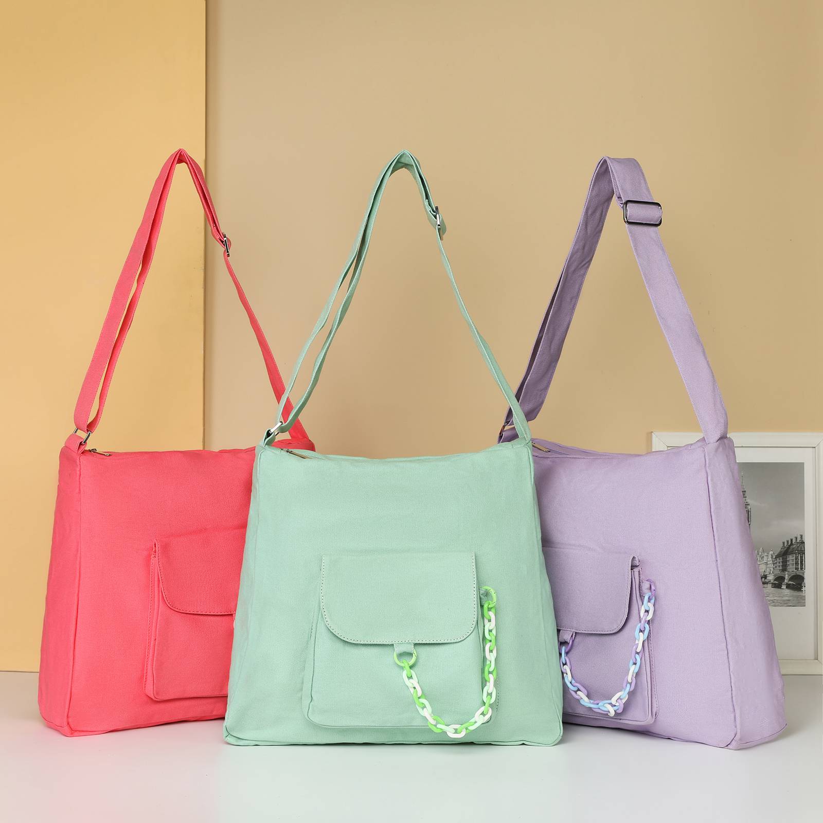 Minimalist Fashion Chain Decoration Crossbody Bags Canvas Tote Bags for Office College