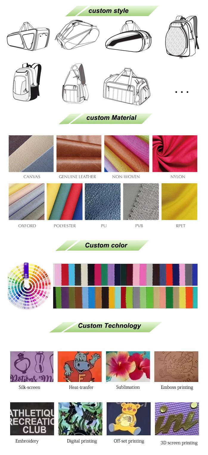 Nylon Portable Sport Gym Bag Large Capacity Waterproof Pickleball Padel Bag Custom logo