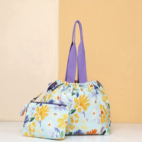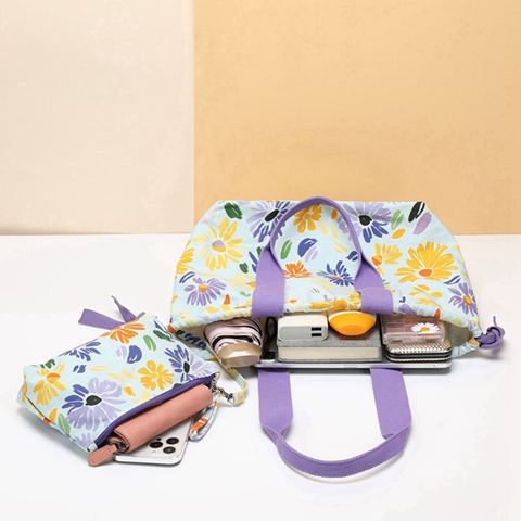 Personalized  Floral Pattern Print Canvas Tote Bag Zero Wallet Makeup Bag Set