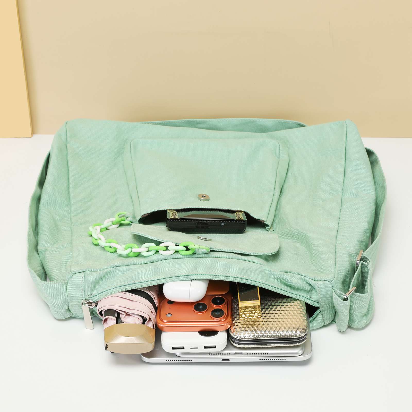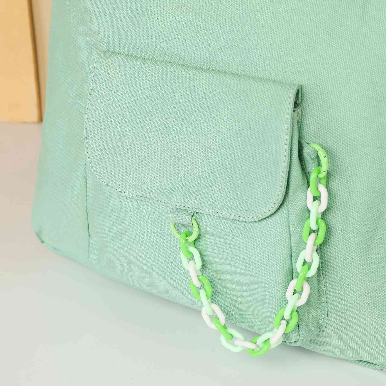 Top-quality Minimalist Chain Decoration Canvas Tote Bags with Pocket Beach Bags Women's Bags