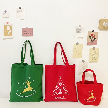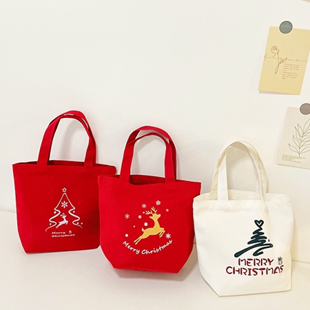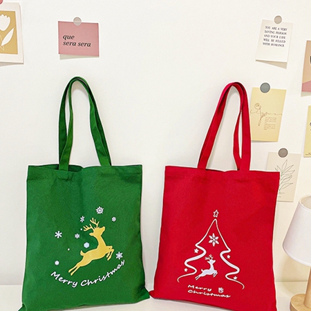 Wholesale Foldable Christmas Tote Bags Custom Logo Printed Canvas Reusable Grocery Bags